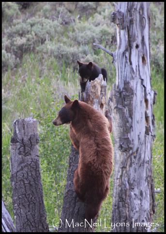 Black Bear Raids Flicker Nest, Blacktail Plateau, YNP, WY July 5, 2012 I always feel like there is something else new to see each & every day in Yellowstone and last week was one such occasion! Over the last 12 years, I have been blessed with amazing moments in nature on the Blacktail Plateau Drive, a secondary park dirt road. As I rounded a corner, this cinnamon black bear sow with her one cub-of-the-year was in the process of raiding a Northern Flicker nest. She was successful in eating at least 1 bird that we saw... As both black bear and grizzly are opportunistic feeders, this was just another wild food source found in Yellowstone.